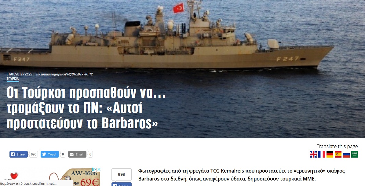 Μάλιστα το είχαν αναφέρει ευθαρσώς: Αυτά τα πολεμικά πλοία προστατεύουν το Barbaros σε περίπτωση ελληνικής αντίδρασης.