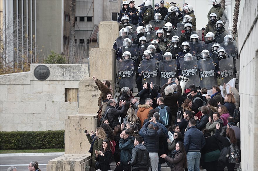 Σφοδρές συγκρούσεις εκπαιδευτικών με ΜΑΤ έξω από τη Βουλή – Επεισόδια και χρήση χημικών (φωτο)