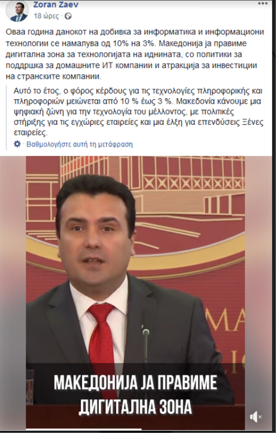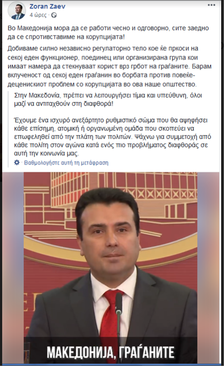 Στο πλαίσιο αυτό, για τη «Μακεδονία» και τους «πολίτες της Μακεδονίας» μιλά απερίφραστα ο Ζόραν Ζάεφ δίνοντας τον τόνο των επιτυχιών της κυβέρνησής του στον τομέα των μεταρρυθμίσεων και προβάλλοντας τις επιτυχές της χώρας του στον αθλητισμό.