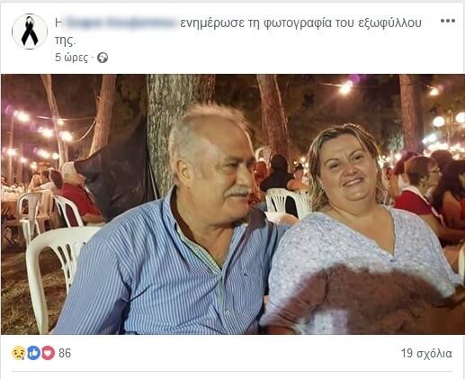 Η μία κόρη του ζευγαριού λίγες ώρες μετά την τραγωδία ανέβασε στο Facebook μια φωτογραφία των γονιών της. Της μητέρας της που δεν βρίσκεται πια στη ζωή και του πατέρα της που νοσηλεύεται σε άθλια ψυχολογική κατάσταση στο νοσοκομείο στην Καλαμάτα.