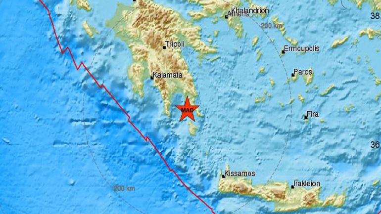 Σύμφωνα με το Ευρωμεσογειακό Σεισμολογικό Κέντρο, η σεισμική δόνηση είχε μέγεθος 4,9 βαθμών της κλίμακας Ρίχτερ και το επίκεντρο ήταν 80 χιλιόμετρα νοτιοανατολικά της Σπάρτης.