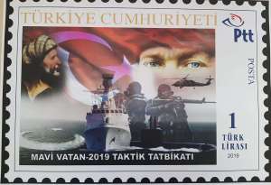Μέχρι και… γραμματόσημο έκαναν οι Τούρκοι τη στρατιωτική άσκηση «Γαλάζια Πατρίδα», την οποία προπαγανδίζουν τα ΜΜΕ της γείτονος χώρας.