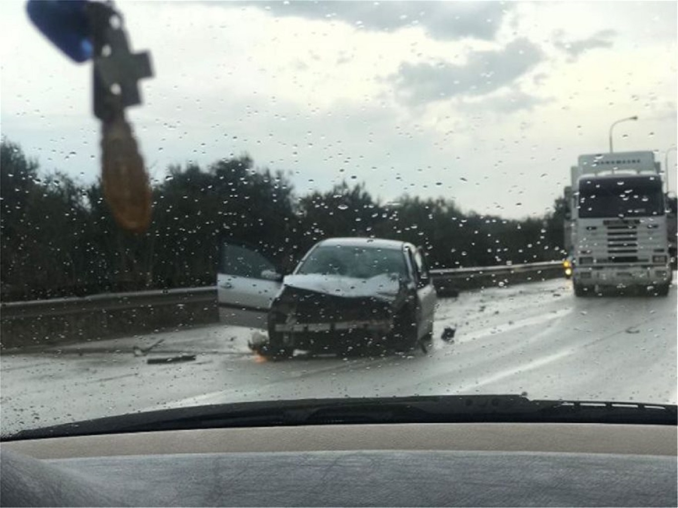 Την ώρα του ατυχήματος η βροχή ήταν έντονη, δυσχεραίνοντας την δύσκολη κατάσταση. Από θαύμα δεν θρηνήσαμε θύματα στην άσφαλτο.