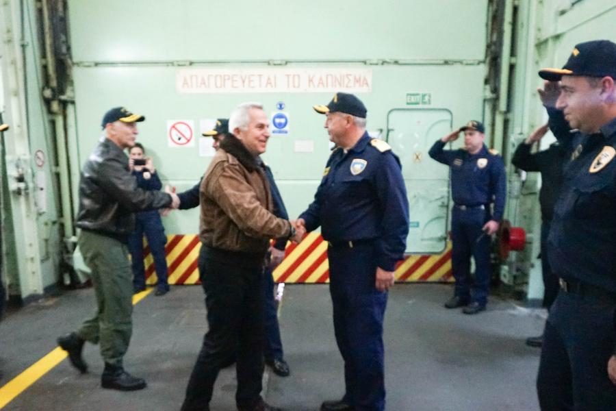 Τον Υπουργό Εθνικής Άμυνας συνόδευσαν στην φρεγάτα “Σαλαμίς” ο Αρχηγός ΓΕΕΘΑ, Πτέραρχος Χρήστος Χριστοδούλου, ο Αρχηγός ΓΕΣ, Αντιστράτηγος Γεώργιος Καμπάς, ο Αρχηγός ΓΕΝ, Αντιναύαρχος Νικόλαος Τσούνης, ο Αρχηγός ΓΕΑ, Αντιπτέραρχος (Ι) Γεώργιος Μπλιούμης και ο Αρχηγός Στόλου, Αντιναύαρχος Στυλιανός Πετράκης.