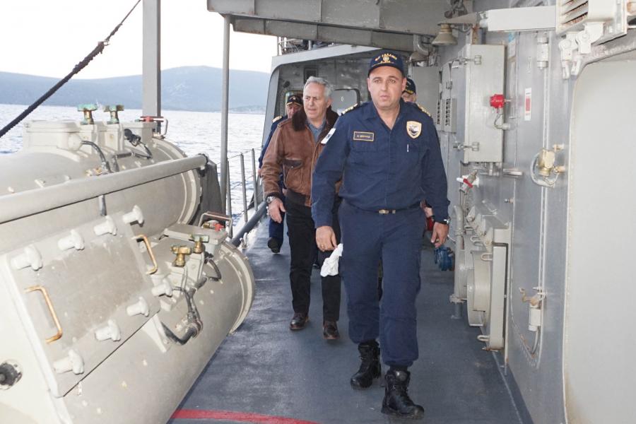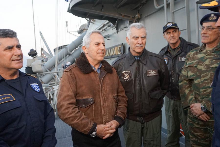 Τον Υπουργό Εθνικής Άμυνας συνόδευσαν στην φρεγάτα “Σαλαμίς” ο Αρχηγός ΓΕΕΘΑ, Πτέραρχος Χρήστος Χριστοδούλου, ο Αρχηγός ΓΕΣ, Αντιστράτηγος Γεώργιος Καμπάς, ο Αρχηγός ΓΕΝ, Αντιναύαρχος Νικόλαος Τσούνης, ο Αρχηγός ΓΕΑ, Αντιπτέραρχος (Ι) Γεώργιος Μπλιούμης και ο Αρχηγός Στόλου, Αντιναύαρχος Στυλιανός Πετράκης.