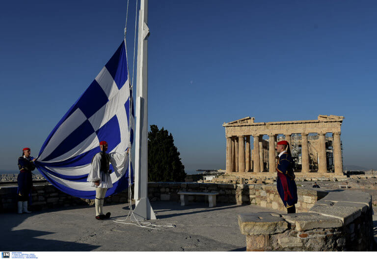 Δείτε τις φωτογραφίες από την έπαρση της σημαίας στην Ακρόπολη την 25η Μαρτίου