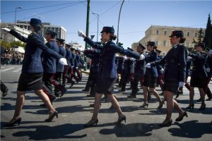 Είτε πάνω στα άρματα μάχης, είτε σημαιοφόροι σε πεζοπόρα τμήματα οι γυναίκες στα χακί, τα σκούρα μπλε ή τα ραφ τράβηξαν τα βλέμματα στη φετινή στρατιωτική παρέλαση για την 25η Μαρτίου στο Σύνταγμα.
