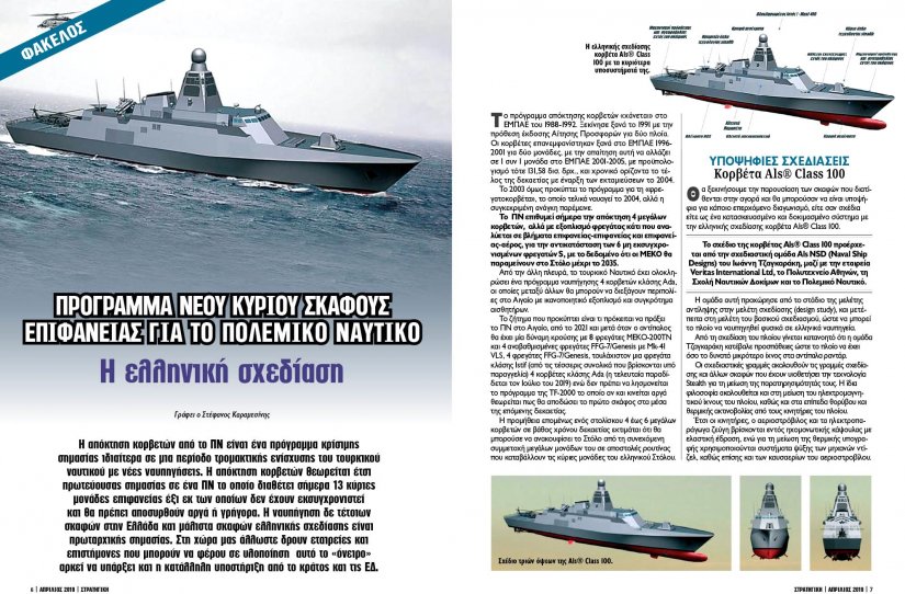 Ένα τέτοιο πρόγραμμα αποτελεί το σχέδιο της κορβέτας Als® Class 100, εκτοπίσματος 2.900 περίπου τόνων. Το πρόγραμμα αυτό το οποίο το 2013/2014 είχε προχώρησε σημαντικά σε επίπεδο αρχικής σχεδίασης και ενσωμάτωσης των παρατηρήσεων και απαιτήσεων του ΓΕΕΘΑ, ιδιαίτερα στο σκέλος της ικανοποίησης των επιχειρησιακών απαιτήσεών του στην ΝΑ Μεσόγειο, μετεξελίχθηκε στην συνέχεια, στην φρεγάτα περιοχής Als® Class 125, πλήρους εκτοπίσματος 5.000 τόνων.