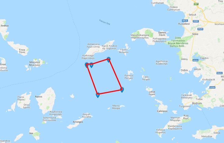 Για την επόμενη δηλαδή στις 29 Μαρτίου με την NAVTEX 0407/19 δεσμεύει όλη την θαλάσσια περιοχή μεταξύ Ικαρίας, Φούρνων και Πάτμου και πάλι για την διενέργεια άσκησης με την χρήση όπλων.