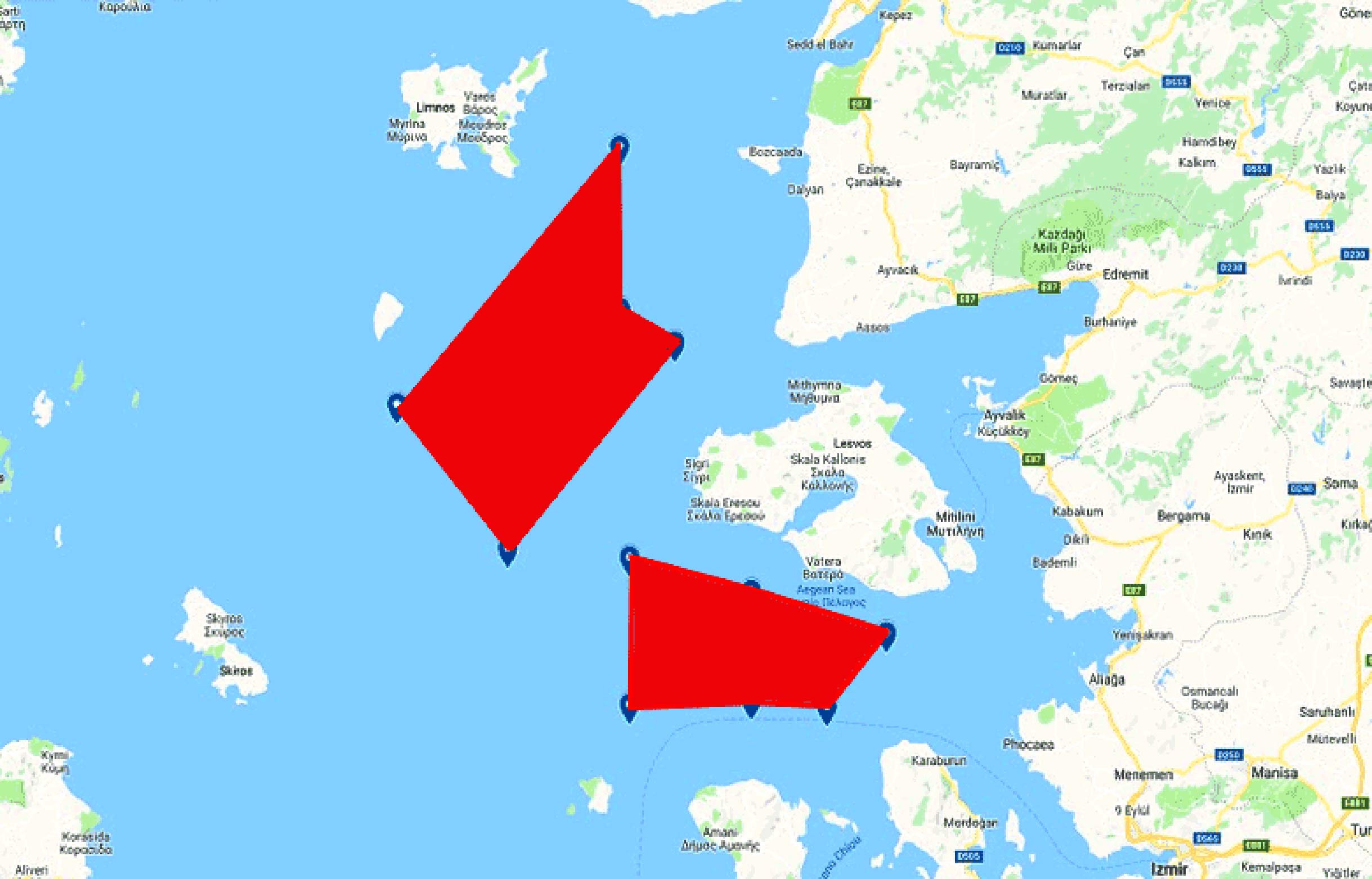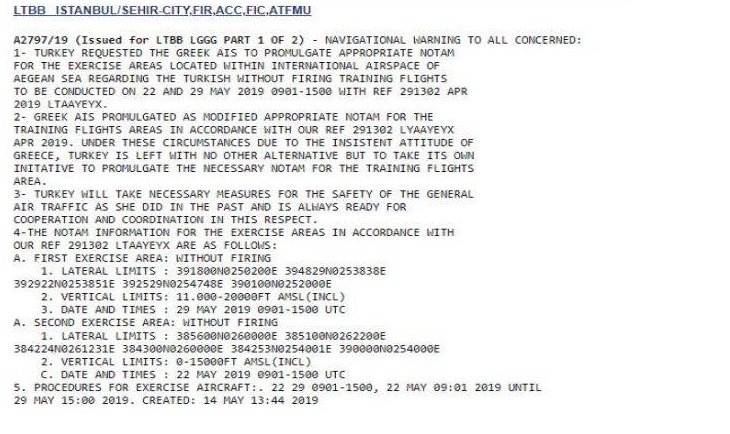 Όπως φαίνεται στο σχετικό χάρτη η Τουρκία με δύο παράνομες NOTAM επιχε4ιρεί να αποκόψει τη Λέσβο από τα δυτικά από τις 22 έως και τις 29 Μαΐου.