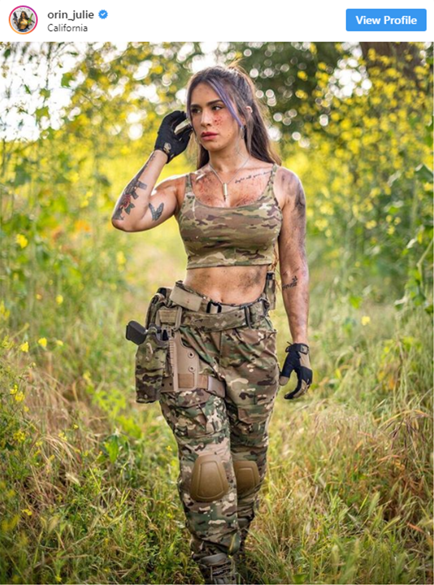Η Orin είναι γνωστή στα social media ως «βασίλισσα των όπλων». Η νεαρή γυναίκα ανεβάζει συχνά φωτογραφίες με όπλα σε διάφορες πόζες. Όμως δεν είναι μόνο η βασίλισσα των όπλων. Είναι μία σούπερ αποκαλυπτική γυναίκα, με στυλάκι που ξεσηκώνει τον ανδρικό πληθυσμό και εξάρει τη φαντασία.