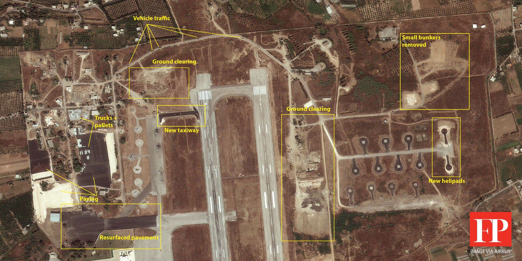 Από την πλευρά του, το ρωσικό υπουργείο Άμυνας ανακοίνωσε ότι απέκρουσε το περασμένο Σαββατοκύριακο επίθεση με τηλεκατευθυνόμενο αεροσκάφος (drone) και πυραυλική επίθεση κατά την ρωσικής αεροπορικής βάσης Χμέιμιμ, κατηγορώντας ως υπεύθυνους για την επίθεση πρώην μαχητές του Μετώπου Αλ Νόσρα .