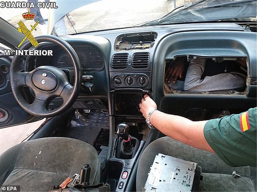 Χαρακτηριστικό παράδειγμα αποτελούν οι φωτογραφίες που κάνουν σήμερα τον γύρο του διαδικτύου, και δείχνουν έναν νεαρό μετανάστη στριμωγμένο στο χώρο πίσω από το ντουλαπάκι ενός αυτοκινήτου.