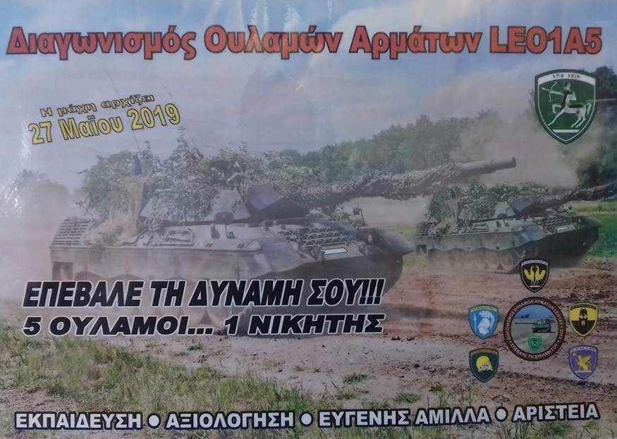 Ξεκίνησε, εχθές, Δευτέρα 27 Μαΐου 2019, ο διαγωνισμός αρμάτων μάχης Leopard 1A5 στο πεδίο βολής Πετροχωρίου, στην Ξάνθη. Στον φετινό διαγωνισμό, σε αντίθεση με τον περσινό διαγωνισμό αρμάτων, που συμμετείχαν και Leopard 2HEL/A4, συμμετέχουν μόνο πέντε ουλαμοί αρμάτων μάχης Leopard 1A5 από Επιλαρχίες που ανήκουν σε Μηχανοκίνητες και Τεθωρακισμένες Ταξιαρχίες του Ελληνικού Στρατού.