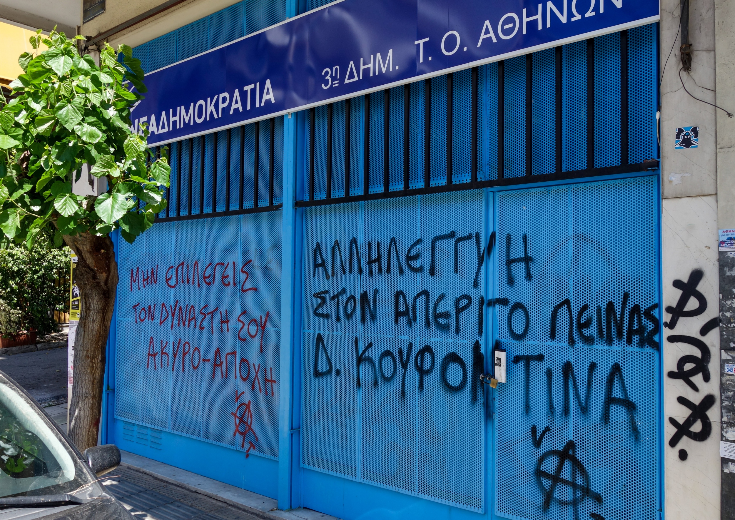 Την ευθύνη για την επίθεση στην προεκλογική εκδήλωση της ΝΔ στο κτίριο της Εθνικής Ασφαλιστικής ανέλαβε ομάδα που υπογράφει ως «αναρχικοί/ες». Στο κλείσιμο του κειμένου τους απειλούν ότι αν δεν δοθεί άδεια στον Δημήτρη Κουφοντίνα οι συνέπειες θα είναι τεράστιες.