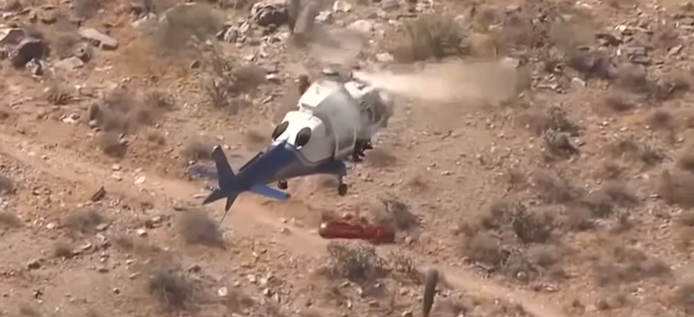 Οι διασώστες έφτασαν στο σημείο, όπου είχε τραυματιστεί με ελικόπτερο. Μόλις την έβαλαν στο φορείο και την έδεσαν με ένα ειδικό σχοινί στο ελικόπτερο δεν περίμεναν ποτέ να συμβεί αυτό που ακολούθησε. Όταν το ελικόπτερο ανέσυρε τη γυναίκα, έσπασε ένα σχοινί με αποτέλεσμα το φορείο να στριφογυρίζει με τόση ταχύτητα, θυμίζοντας παιχνίδι σε λούνα πάρκ.