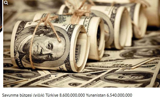 Αμυντικός προϋπολογισμός (ετήσιος) Τουρκία 8.600.000.000, Ελλάδα 6.540.000.000