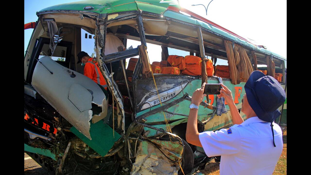 Το δυστύχημα σημειώθηκε τα ξημερώματα της Δευτέρας, όταν το πούλμαν έπεσε σε δύο αυτοκίνητα και σε ένα φορτηγό στην περιοχή της Δυτικής Ιάβας.