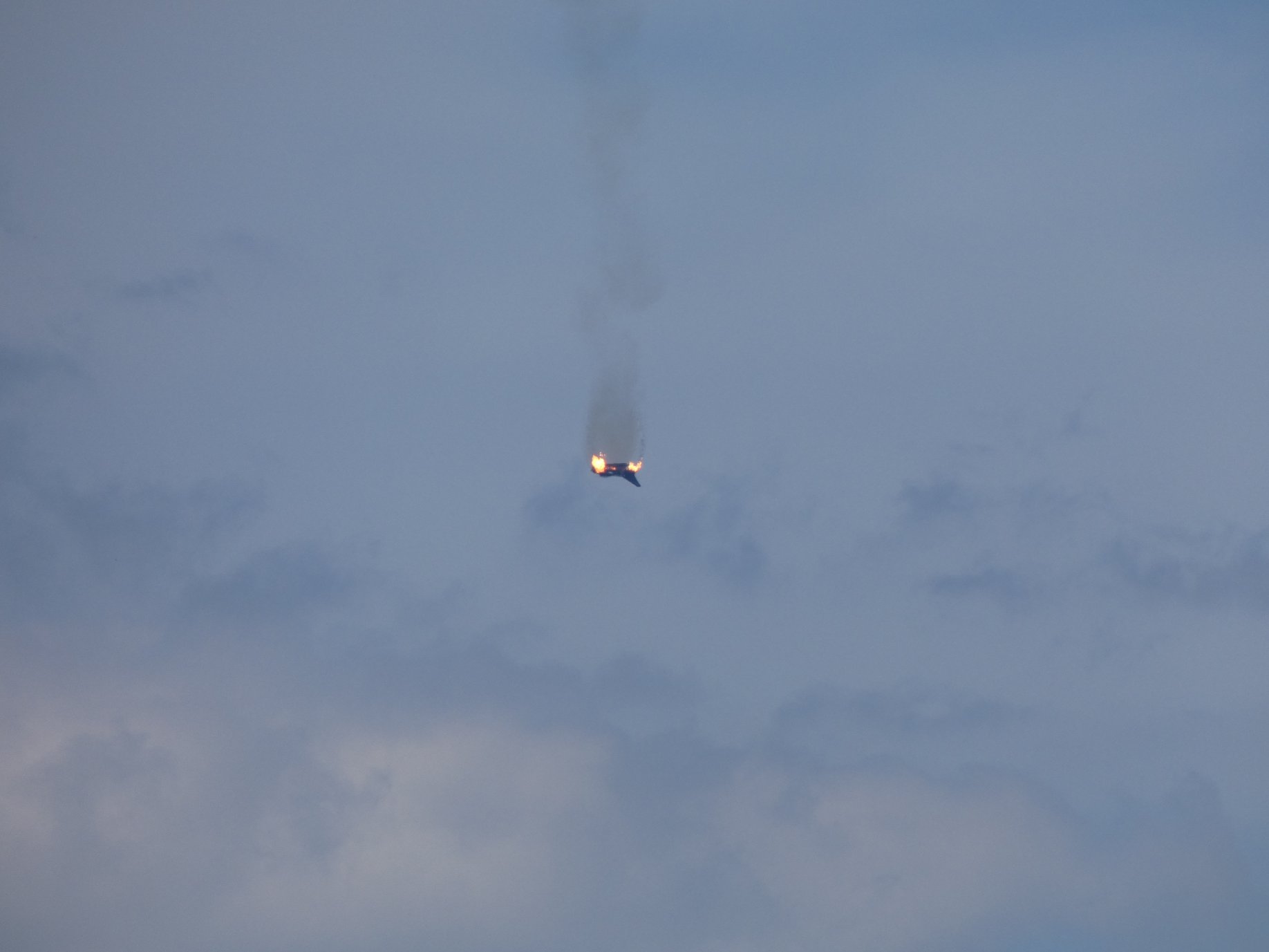 Αμέσως μετά την πρόσκρουσή του στο έδαφος διακρίνεται μαύρος καπνός με τους αυτόπτες μάρτυρες να παρατηρούν έκπληκτοι το απίστευτο γεγονός.