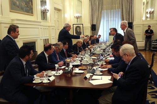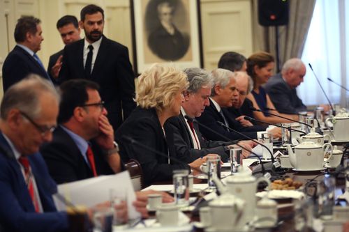 Στη συνεδρίαση συμμετείχαν εκ μέρους του ΣΥΡΙΖΑ ο Κώστας Δουζίνας, η βουλευτής Μαρία Τριανταφύλλου και ο συντονιστής του Τομέα Διεθνών Σχέσεων του κόμματος, Παναγιώτης Τριγάζης, εκ μέρους της ΝΔ ο τομεάρχης Εξωτερικών, Γιώργος Κουμουτσάκος, και ο πρέσβης επί τιμή, Γιώργος Σαββαΐδης, εκ μέρους της Δημοκρατικής Συμπαράταξης ο Ανδρέας Λοβέρδος και ο Πέτρος Ευθυμίου, εκ μέρους του Ποταμιού ο Νίκος Νυφούδης και ο πρέσβης επί τιμή, Γιώργος Κακλίκης, εκ μέρους των Ανεξάρτητων Ελλήνων, η Μαρία Κόλλια-Τσαρουχά και ο πρέσβης εκ προσωπικοτήτων, Ελευθέριος Καραγιάννης και εκ μέρους της Ένωσης Κεντρώων η διευθύντρια του διπλωματικού γραφείου του κόμματος, Ελένη Μαρτσούκου και ο Γιώργος Κουτουλάκης.