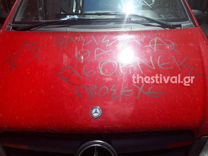 Οι δράστες προκάλεσαν υλικές ζημιές στο αυτοκίνητο του υποψήφιου με την Ένωση Κεντρώων στην Α’ Θεσσαλονίκης, ενώ έγραψαν και απειλητικά συνθήματα, όπως «φασίστα πρόσεχε θα πεθάνεις».