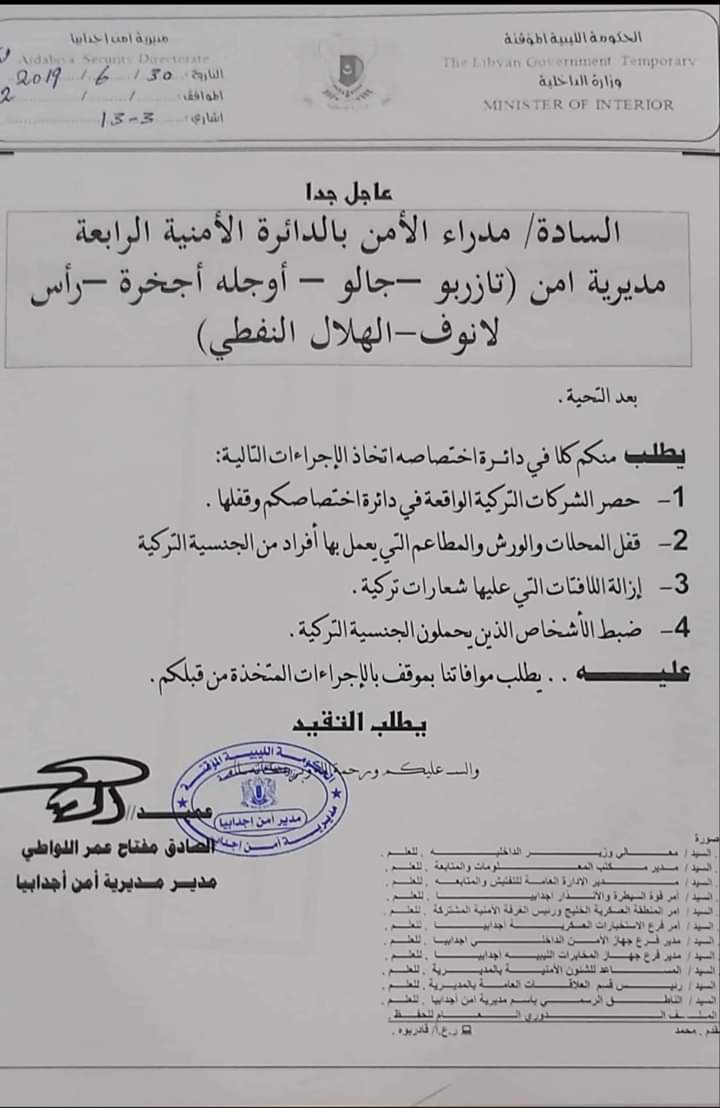 “Η Ajdabiya μας ενημέρωσε για την πρόθεση να συλληφτούν Τούρκοι, να κλείσουν όλα τα τουρκικά μαγαζιά στην περιοχή, να κατέβουν όσες πινακίδες ήταν γραμμένες στα τουρκικά και να κλείσουν όλες οι τουρκικές εταιρείες” ανέφεραν κάτοικοι.