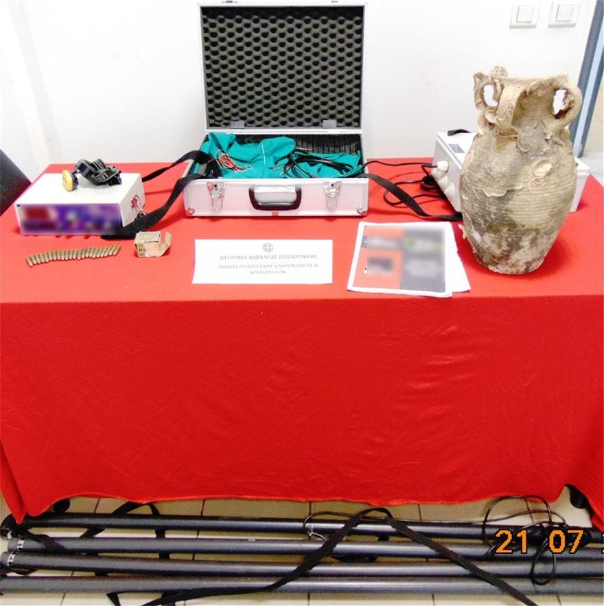 Πρόκειται για δύο Έλληνες ηλικίας 69 και 38 ετών και ενός 31χρονου Γεωργιανού, σε βάρος των οποίων σχηματίσθηκε δικογραφία για τα κατά περίπτωση αδικήματα της παράβασης του Νόμου για την «Προστασία των Αρχαιοτήτων και εν γένει της Πολιτιστικής Κληρονομιάς» και Νόμου «Περί όπλων».