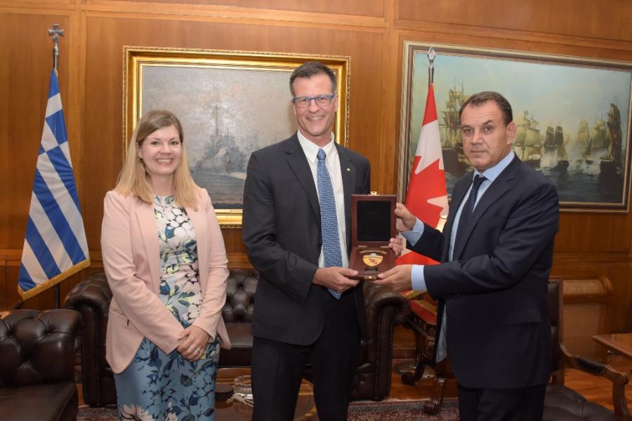 Ο Υπουργός Εθνικής Άμυνας, κ. Νικόλαος Παναγιωτόπουλος, είχε σήμερα συνάντηση με τον Πρέσβυ του Καναδά κ. MarkAllen, κατά την οποία συζητήθηκαν η περαιτέρω ενίσχυση της διμερούς συνεργασίας και οι εξελίξεις στην Ανατολική Μεσόγειο.