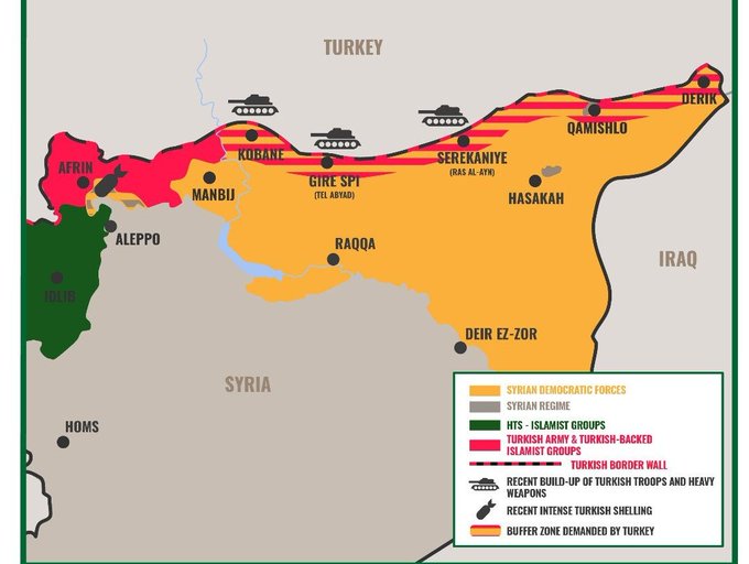 Το ζήτημα είναι πως η Αγκυρα απαιτεί μια ζώνη ασφαλείας βάθους 30 χλμ η οποία να ελέγχεται πλήρως από τις τουρκικές ένοπλες δυνάμεις.