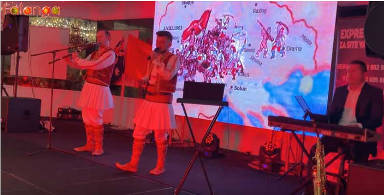 Ομιλίες και χοροί με φόντο ψευτοαλυτρωτικούς χάρτες της «Μεγάλης Μακεδονίας», τον ήλιο της Βεργίνας και τον Γκότσε Ντέλτσεφ.