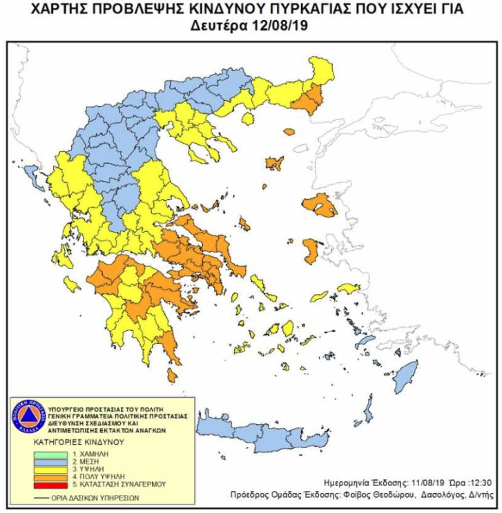Πολύ υψηλός παραμένει ο κίνδυνος πυρκαγιάς και για αύριο Δευτέρα 12 Αυγούστου.