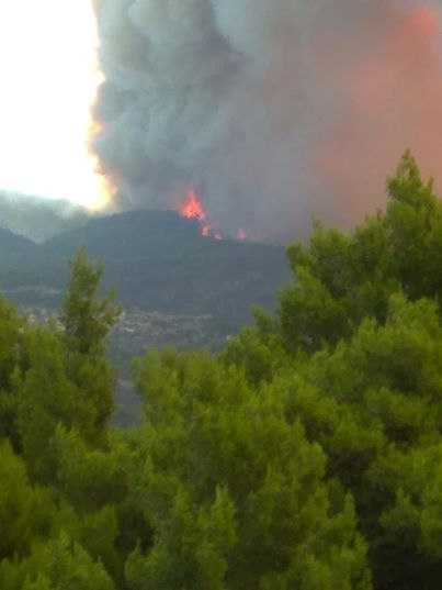 Η πυρκαγιά βρίσκεται σε εξέλιξη και οι επόμενες ώρες, ιδιαίτερα μέσα στη νύχτα, θα είναι κρίσιμες για την έκβασή της.