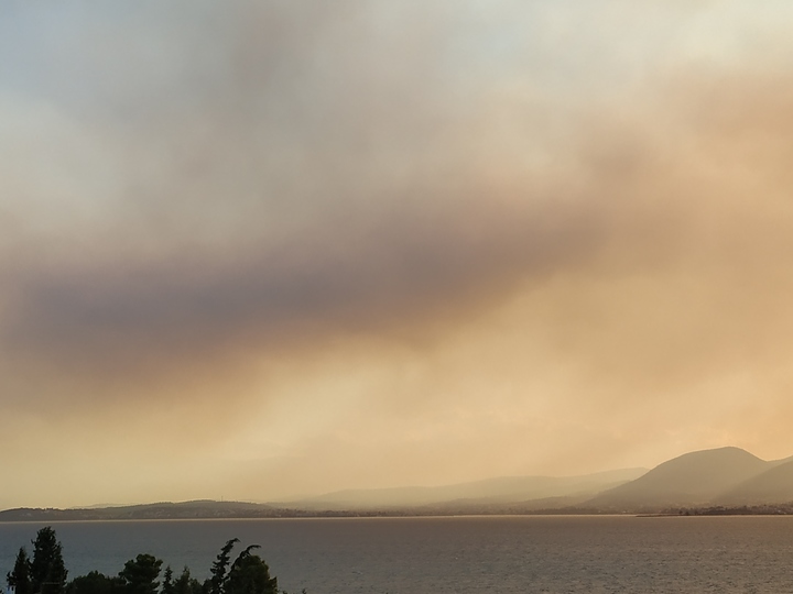 Έντονη είναι η αίσθηση του καπνού από τη φωτιά σε πολλές περιοχές της Εύβοιας.