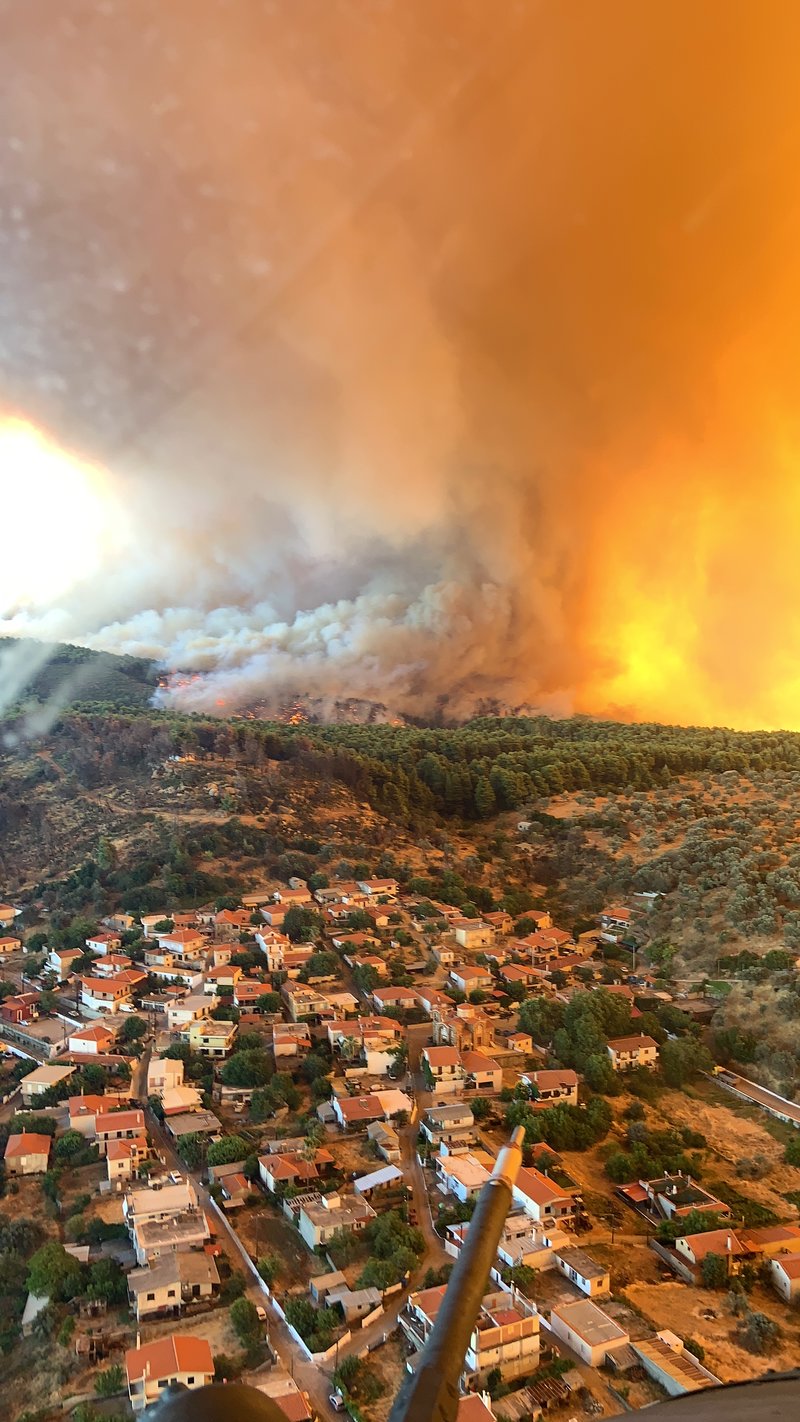 Το μεγάλο ενεργό μέτωπο βρίσκεται σε απόσταση περίπου δύο χιλιομέτρων από το χωριό, ενώ οι δυνάμεις της Πολιτικής Προστασίας με επικεφαλής τον γενικό γραμματέα Νίκο Χαρδαλιά δίνουν μάχη με το χρόνο για να δημιουργήσουν διπλή γραμμή άμυνας για το χωριό, φτιάχνοντας αντιπυρικές ζώνες με γκρέιντερ και μπουλντόζες.