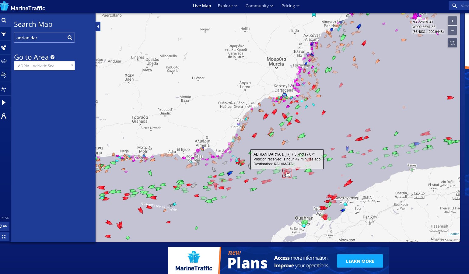 Παράλληλα, σύμφωνα με τον ιστότοπο παρακολούθησης των κινήσεων των πλοίων «Marine Traffic», το δεξαμενόπλοιο αναχώρησε το βράδυ της Κυριακής από το Γιβραλτάρ και κατευθύνεται προς τη Μεσόγειο. Μάλιστα, την Τρίτη το πρωί έπλεε στην Ισπανία, κάτω από την Αλμερία και την Καρταχένα και πλησίαζε τα νησιά της Ιμπιζα και της Μαγιόρκα.