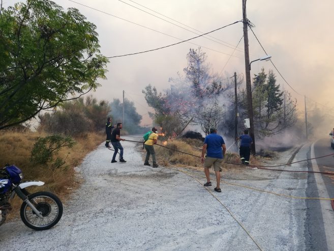 Οι πρώτες πληροφορίες αναφέρουν ότι η φωτιά ξεκίνησε από σπινθήρα από στύλο της ΔΕΗ.
