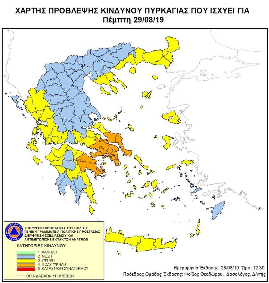 Συγκεκριμένα, στην κατηγορία κινδύνου 4 για να ξεσπάσει και να εκδηλωθεί πυρκαγιά βρίσκονται τρεις περιφέρειες της Ελλάδος. Ο λόγος για: α) Την Περιφέρεια Αττικής, β) Την Περιφέρεια Πελοποννήσου (Κορινθία, Αργολίδα) και γ) την Περιφέρεια Στερεάς Ελλάδας (Εύβοια, Βοιωτία).