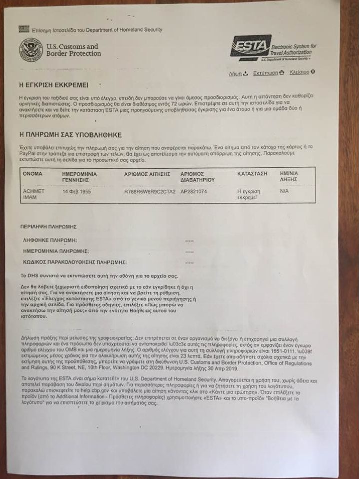 Το γεγονός που οι Αμερικανοί δεν του χορήγησαν βίζα σημαίνει ότι δεν είχε τελικά την ευκαιρία να πάει Αμερική για να συμματάσχει σε μία πολύ σημαντική για τον λαό του εκδήλωση όπου θα ακούγονταν όλα τα προβλήματα του πομακικού λαού από τους Έλληνες Ομογενείς.