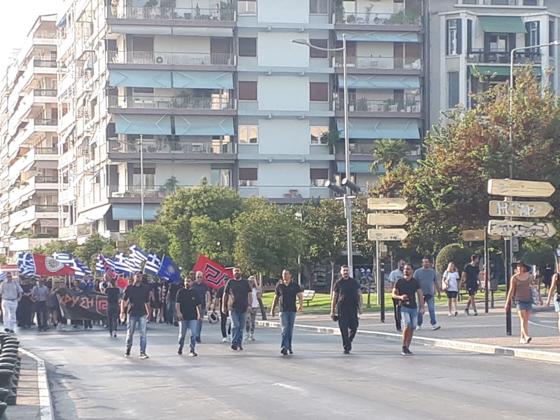 Τα μέλη της ΧΑ έφτασαν με πορεία μέσω της Λ. Νίκης στο σημείο, φωνάζοντας συνθήματα.