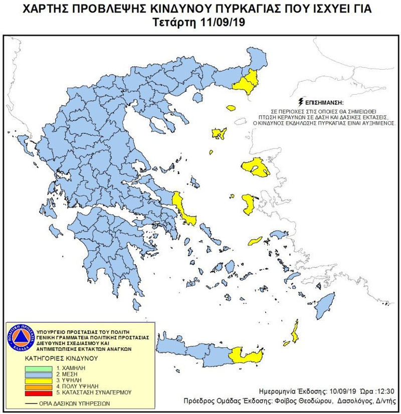Στα ανατολικά της χώρας εστιάζει η Γενική Γραμματεία Πολιτικής Προστασίας, στην πρόβλεψη κινδύνου πυρκαγιάς, για σήμερα, Τετάρτη 11 Σεπτεμβρίου.