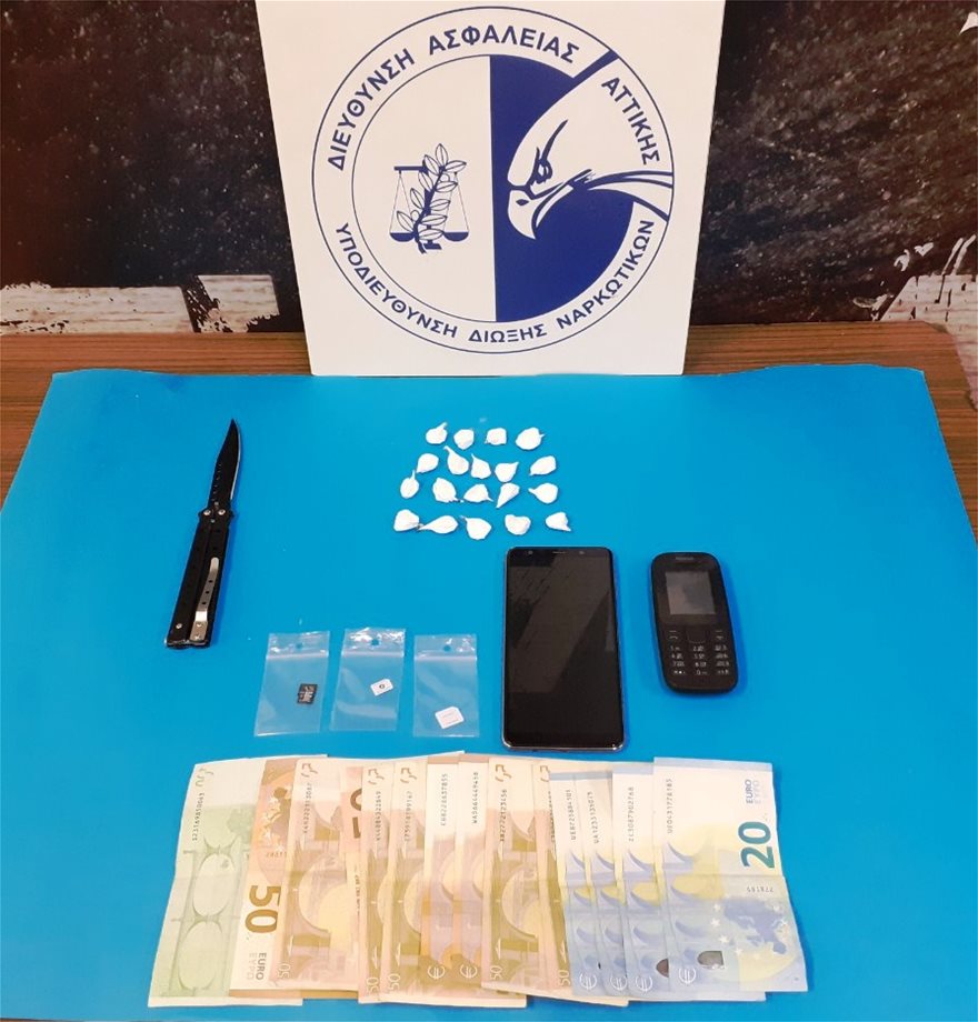 -στο κελί του 39χρονου αλλοδαπού, 19 συσκευασίες κοκαΐνης βάρους -9,7- γραμμαρίων, στιλέτο, το χρηματικό ποσό των 630 ευρώ και δύο συσκευές κινητής τηλεφωνίας