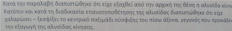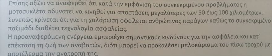Και στη συνέχεια προχωρούν σε μία εκτίμηση που προκαλεί σοκ, καθώς γράφουν πως η χαλάρωση της αλυσίδας της μηχανής, που θα μπορούσε να είχε προκαλέσει σοβαρό τροχαίο, οφείλεται σε ανθρώπινο χέρι: