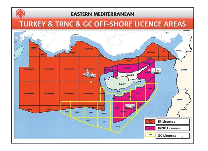 Στην παρουσίαση, ημερομηνίας 17 Σεπτεμβρίου 2019, γίνεται αρχικά μια ιστορική αναδρομή, επιχειρείται να διατυπωθεί ο ισχυρισμός ότι οι δραστηριότητες της Κυπριακής Δημοκρατίας στα ενεργειακά είναι παράνομες, παραβιάζουν τα δικαιώματα της Τουρκίας και των Τουρκοκυπρίων. Κατηγορείται η Κυπριακή Δημοκρατία επειδή έχει προχωρήσει σε συμφωνίες με γειτονικά κράτη για οριοθέτηση της Αποκλειστικής Οικονομικής Ζώνης (ΑΟΖ) πριν τη λύση του Κυπριακού.