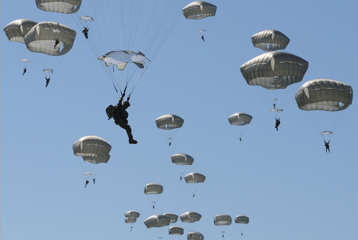 Μέλη της 4ης Ταξιαρχίας Αλεξιπτωτιστών και της 25ης Πεζικού από την Αλάσκα συμμετείχαν σε άσκηση νυχτερινών πτώσεων αργά την Τετάρτη στο Κέντρο Εκπαίδευσης Κοινών Δυνάμεων στο στρατόπεδο Shelby.
