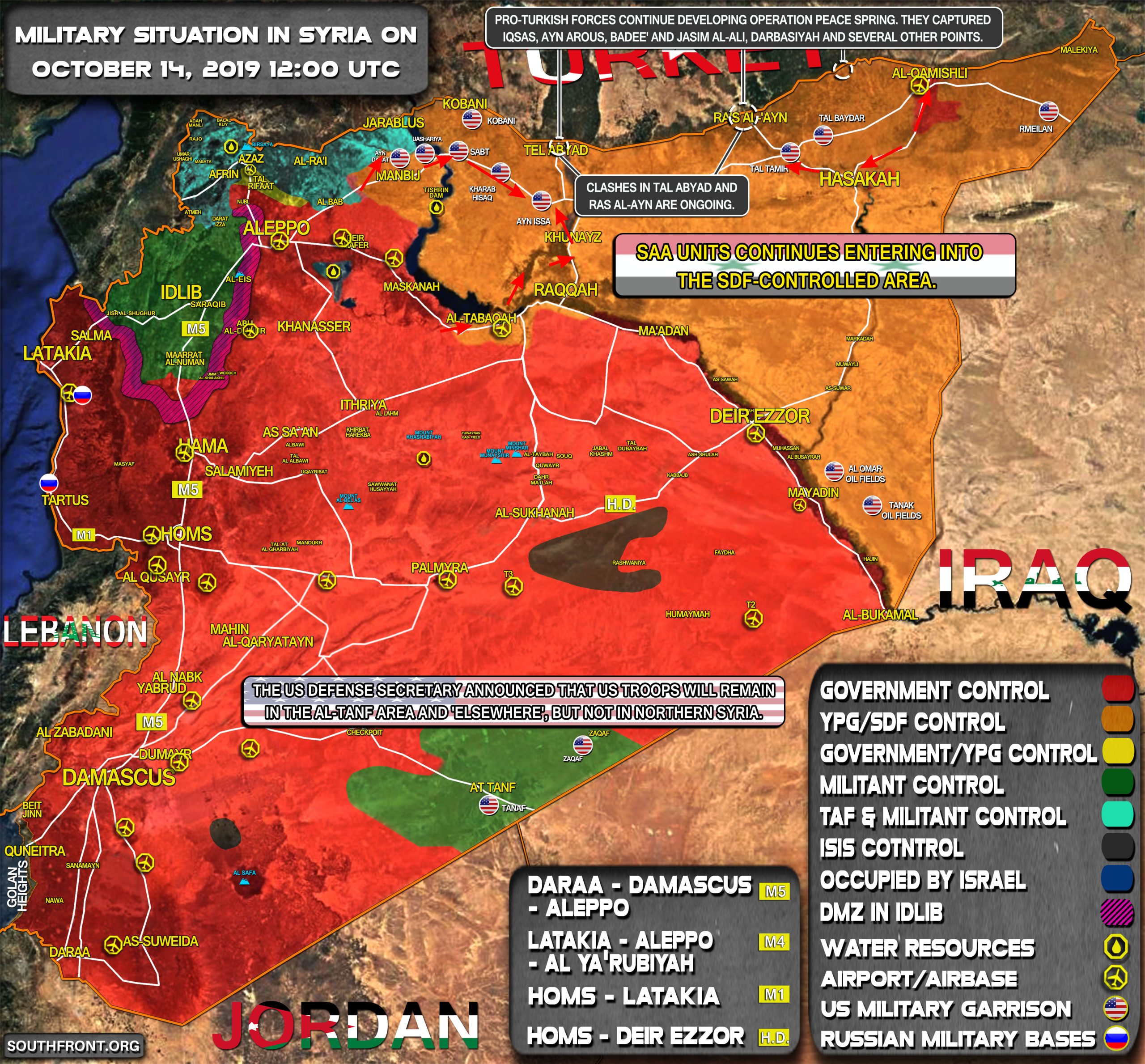 Η προέλαση αυτή του συριακού Στρατού γίνεται κατόπιν συμφωνίας με τους Κούρδους των Syrian Democratic Forces (SDF) σε μια απέλπιδα προσπάθεια των Κούρδων να σώσουν τουλάχιστον την στρατηγική πόλη την οποία προόριζαν για πρωτεύουσα ενός μελλοντικού κουρδικού κρατιδίου.