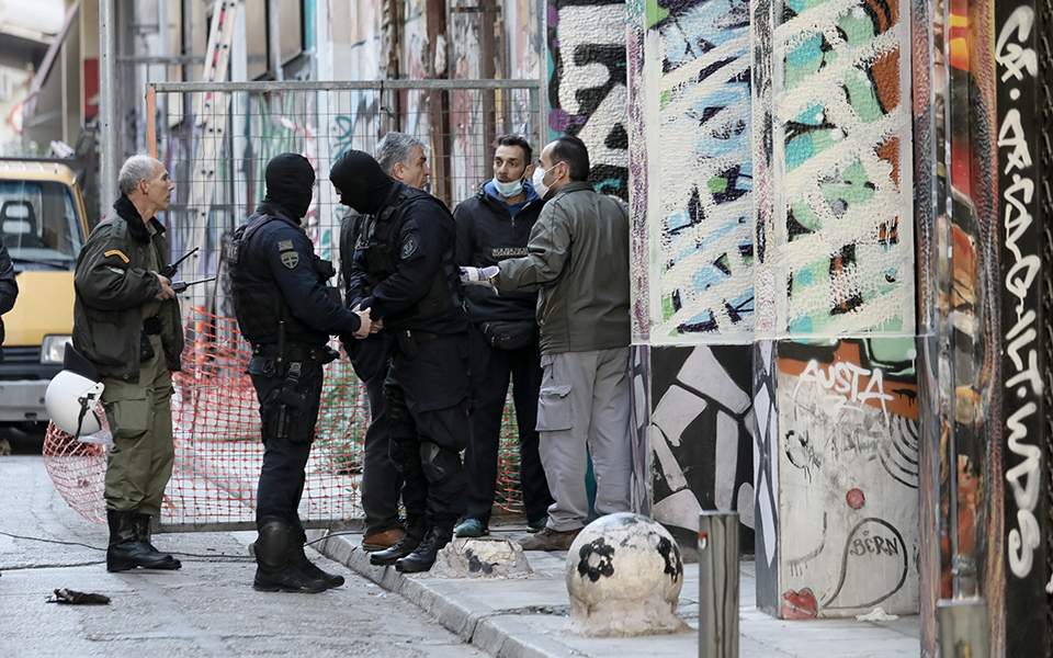 Σε ό,τι αφορά το δεύτερο κτίριο, στη συμβολή των οδών Θεμιστοκλέους και Ερεσού, βρέθηκε, σύμφωνα με τις ίδιες αστυνομικές πηγές, ένας Ελληνας, ο οποίος συνελήφθη.
