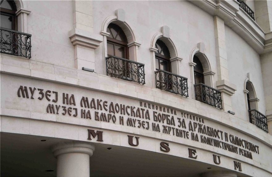 Το «Μουσείο Μακεδονικού Αγώνα για την Ανεξαρτησία» στα Σκόπια, συνεχίζει ανενόχλητο να προβάλλει το αφήγημα των γειτόνων για «ενιαία Μακεδονία», που τμήματά της κατέχονται από Ελλάδα και Βουλγαρία.