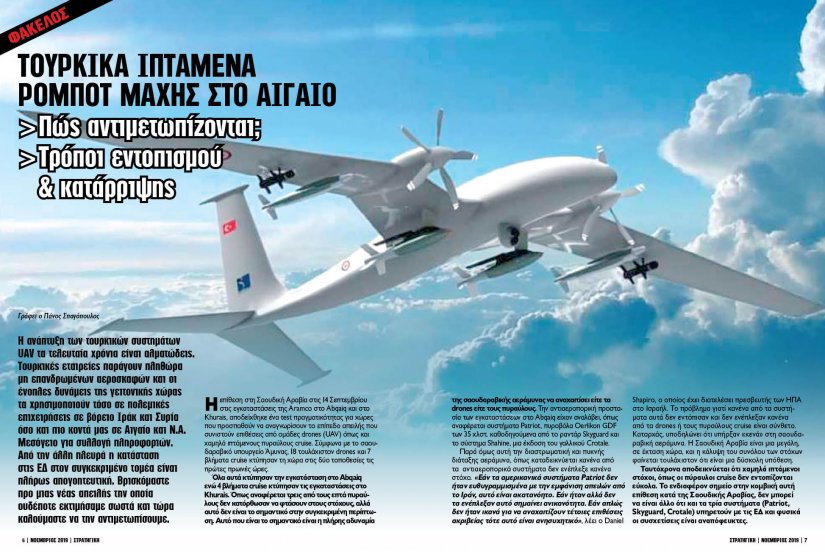 Για τον κίνδυνο των τουρκικών UAV υπάρχει εκτενές δημοσίευμα στην ΣΤΡΑΤΗΓΙΚΗ τεύχος Νοεμβρίου.