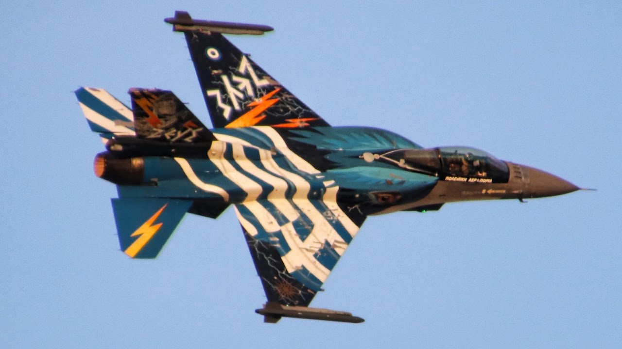 Το αεροσκάφος που χρησιμοποιείται για την εκτέλεση των αεροπορικών επιδείξεων είναι τύπου F-16C Block 52+.