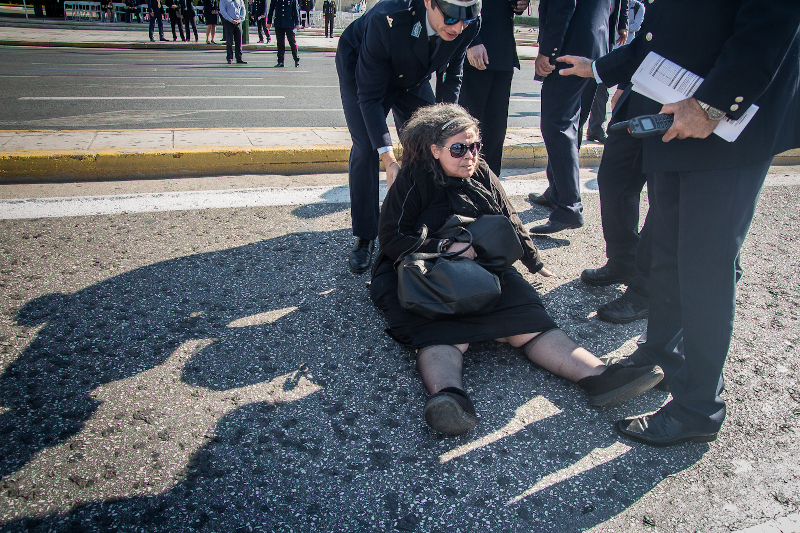 Η Ελένη Λουκά, ωστόσο, που ήταν αποφασισμένη να συνεχίσει το «σόου», έπεσε στο έδαφος, και διεμήνυε ότι δεν θα φύγει από την παρέλαση. Εν τέλει, η… παράσταση της Ελένης Λουκά έλαβε τέλος, δίχως άλλα παρατράγουδα.
